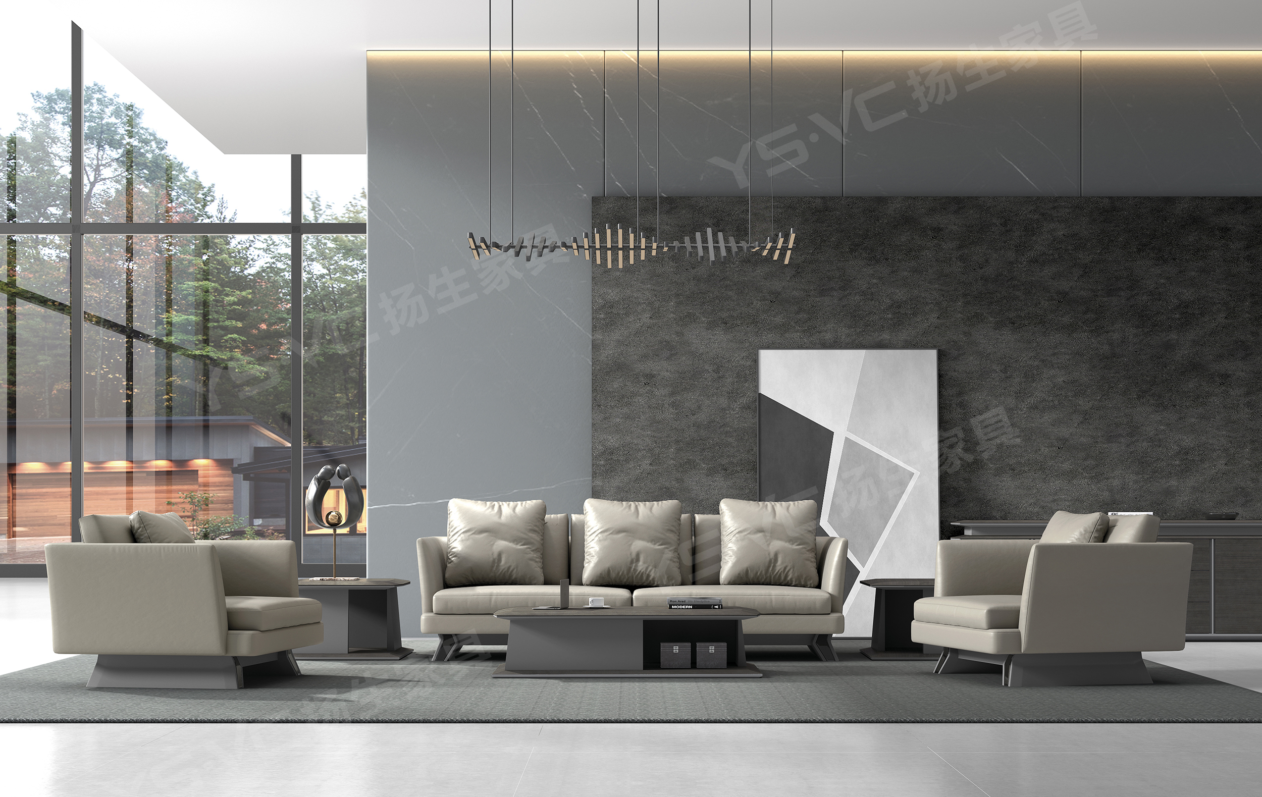 天然木纹与暗哑皮质带来高级质感,将前卫不俗融进办公空间。代表极简精神的几何块面堆砌而成的柜体,将展示与收纳的功能发挥到淋漓尽致。边角开凹槽收口工艺,颠覆平开模式,收纳、展示随心切换。